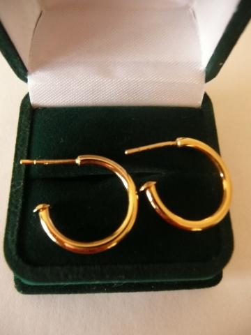 Auksuoti sidabriniai auskarai (925 praba), nemaži, prabuoti tiek auskarai, tiek užsegimai (nuotraukoje jų nėra). Atrodo, kaip auksiniai.