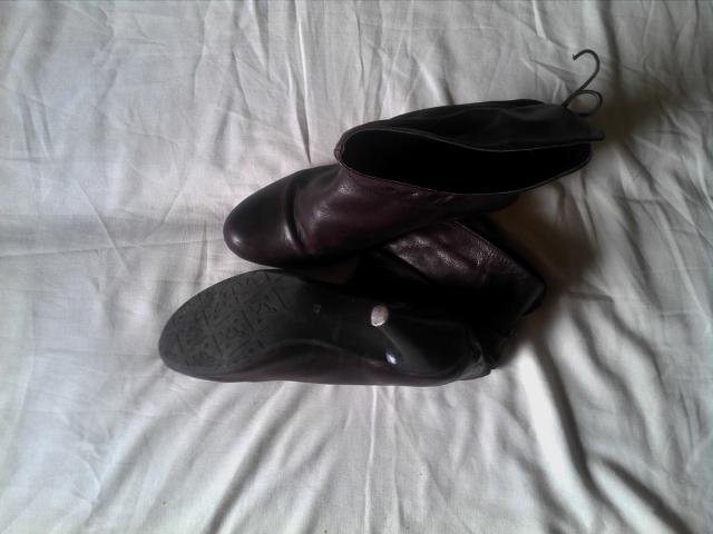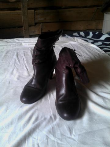 Violetiniai trumpi aulinukai. Rudeniniai. Lb patogus. Kulniukas pakaltas, nenunesioti, tvarkingi. Defektas tik ant vieno batuko pakulnes, matosi foto. Jei po dzinsais, tai visai nesimato.