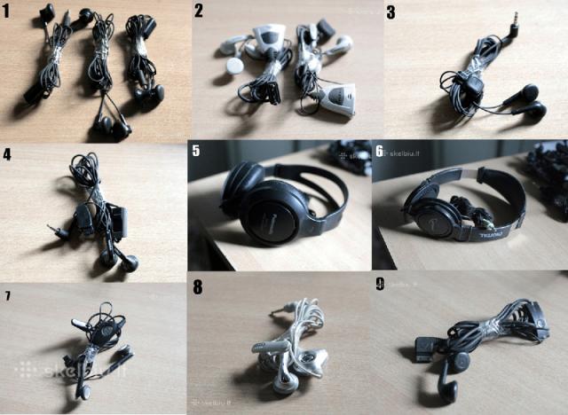 Parduodamos originalios ausinės telefonams: 1. Nokia ausinės 3 vnt (stora jungtis) - 3 Eur 2. Nokia ausinės 2 vnt - 3 Eur 3. Nokia ausinės (stora jungtis) - 3 Eur 4. Nokia ausinės (plona jungtis) - 3 Eur 5. Panasonic RP-HT161 ausinės - 15 Eur 6. Digital "Gembied" MHP-830 ausinės (reguliuojasi garsas) - 10 Eur 7. Samsung ausinės - 3 Eur