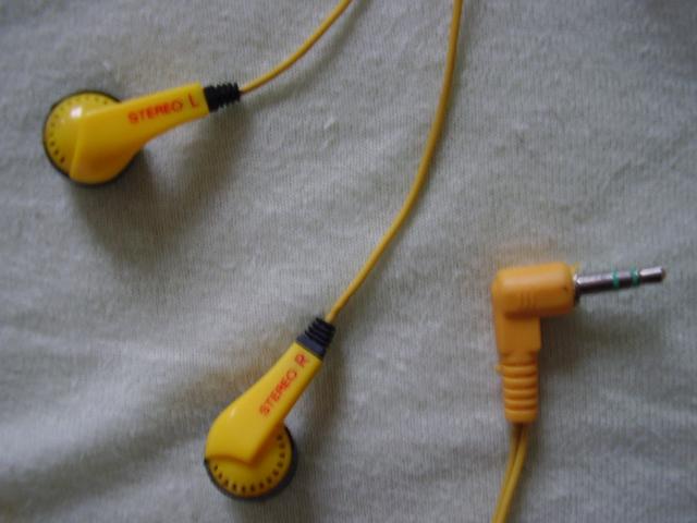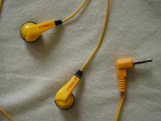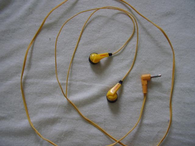 Senovinės, geltonos, plastmasinės ausinės.