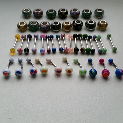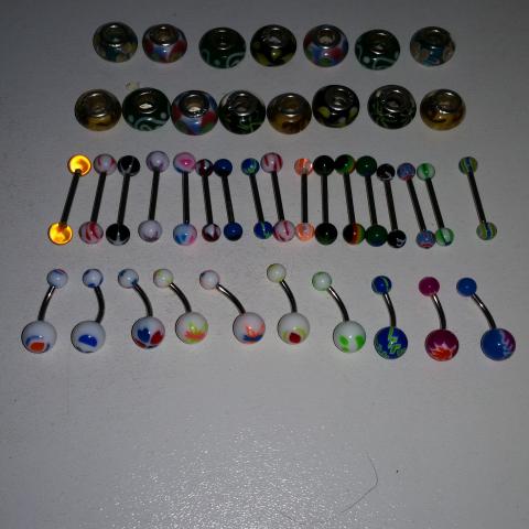 nauji auskariukai,koteliai is medicininio plieno :)kai kurie burbuliukai florescuojantys prie neono :) i bamba ir liezuvi,dar burbuliukai apyrankem