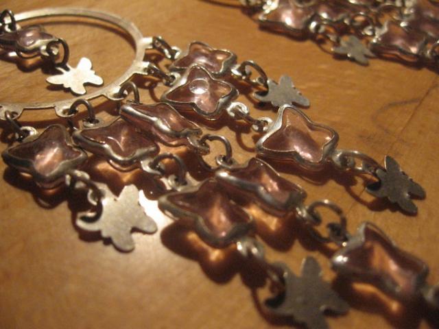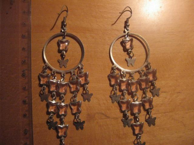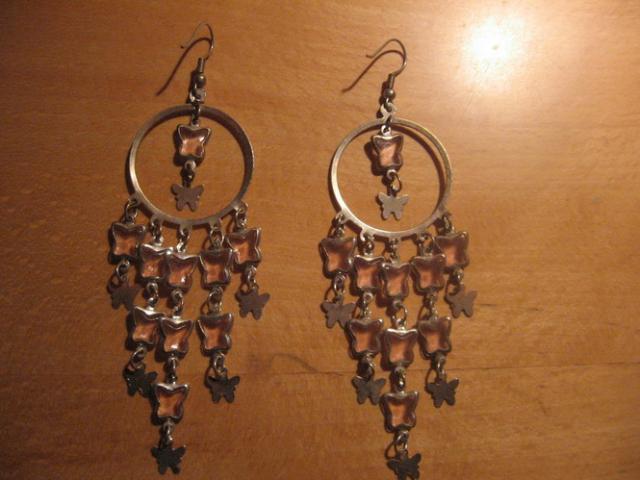 Gražūs auskarai. Šviesiai rausvos spalvos drugeliai, labai puošnūs.