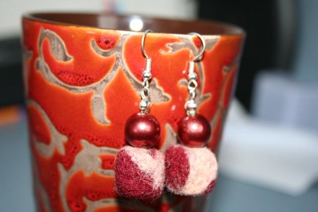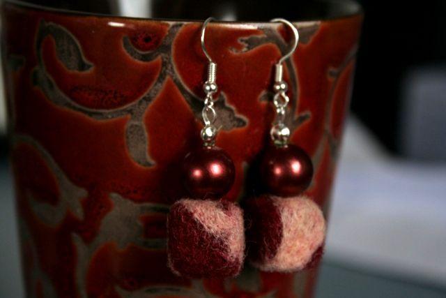 Nauji, rankų darbo nuostabūs auskarai . Susideda iš nuvelto kvadratėlio ir apvalaus vyšninės spalvos karoliuko. (: