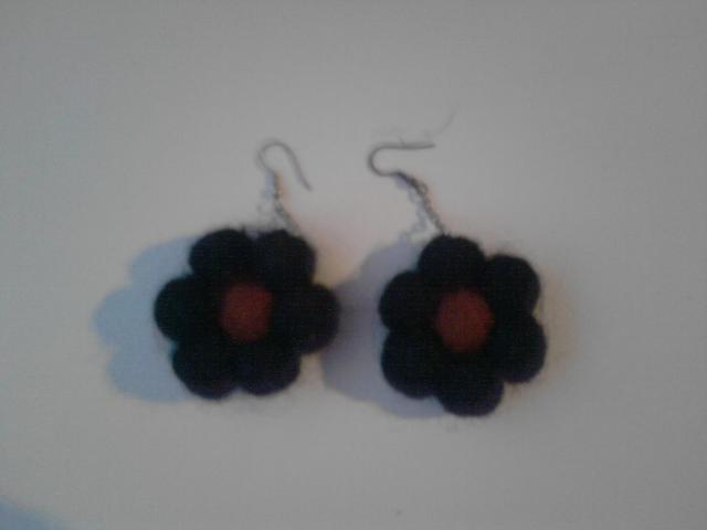rankų darbo, velti iš vilnos auskarai. Labai lengvi ir begalo mieli.