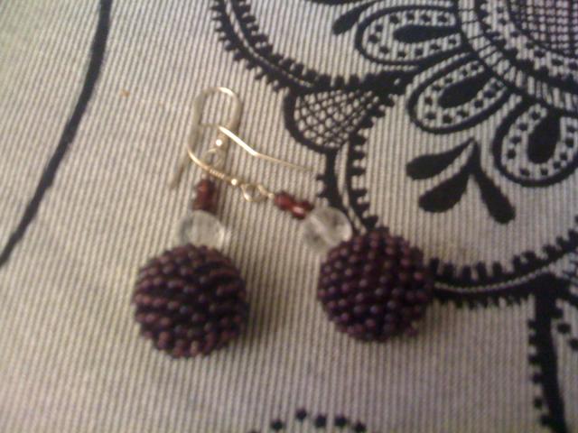Rankų darbo gervuogių uogas primenantys auskarai.