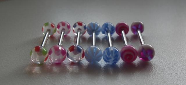 Parduodu naujus įvairių spalvų,raštų,šviečiančius neono šviesoje auskarus į liežuvį.Metaliuko ilgis 16mm. Auskarai akriliniai,negadinantys dantų.Perkant daugiau nei 4 siuntimą užmoku aš.