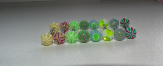 Parduodu naujus įvairių spalvų,raštų,šviečiančius neono šviesoje auskarus į liežuvį.Metaliuko ilgis 16mm. Auskarai akriliniai,negadinantys dantų.Perkant daugiau nei 4 siuntimą užmoku aš.