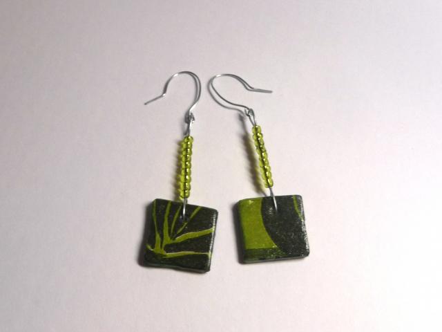 Rankų darbo auskarai, pagaminti dekupažo technika ant modelino pagrindo.