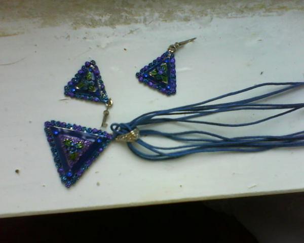 auskarai ir pakabukas ant kaklo