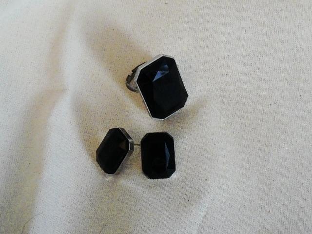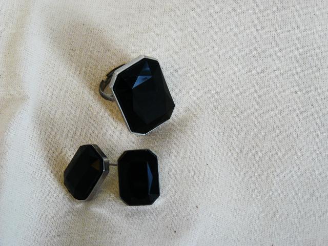 Bižuteriniai auskarai ir žiedas. Juodi, kaip naktis, atrodo labai prabangiai.