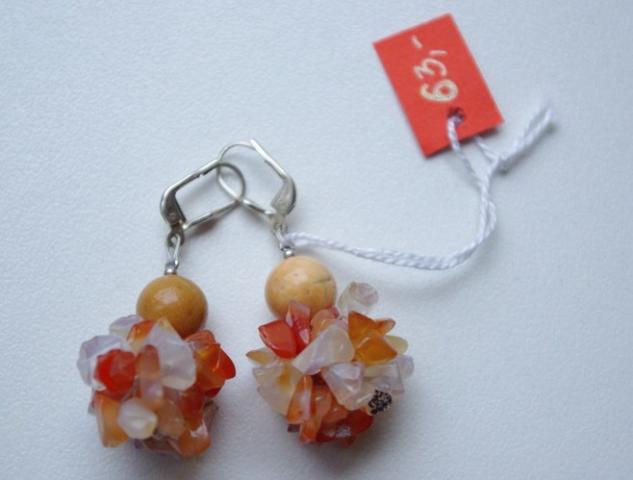 Auskarai iš karneolio skaldos