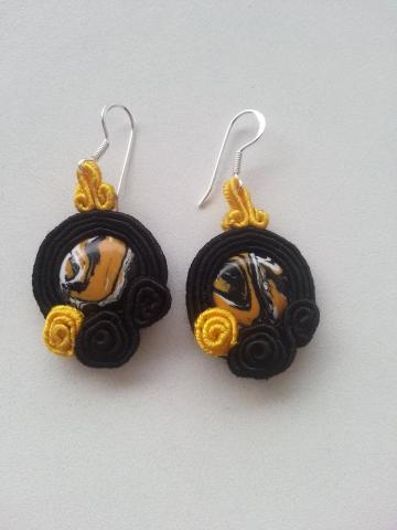 Rankų darbo auskarai iš sutažo juostelės ir akmenukų
