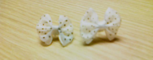 auskarai kaspinėliai. spalva: balta su juodais taškeliais. :>