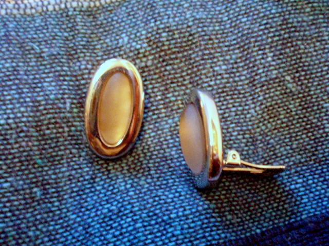 Laaaabai kokybiški bižuteriniai klipsai, dengti rodžiu (platinos grupės baltas metalas). Akutės matnės, pilkos. Nuotraukoje dėl apšvietimo spalvos turi rusvą atspalvį.
