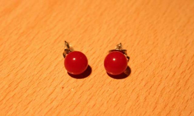 auskarai - maži raudoni burbuliukai