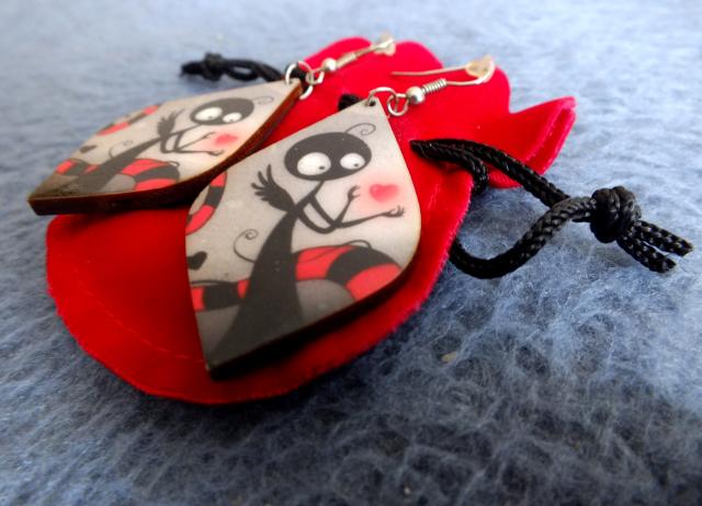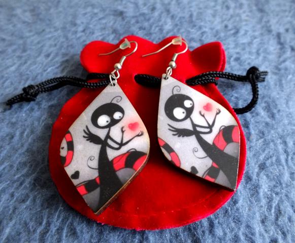 Dekupažuoti auskarai. Ilgis 5 cm.
