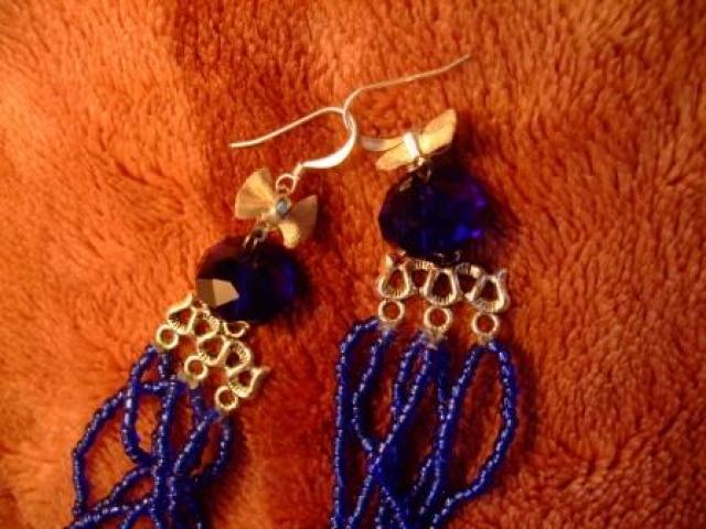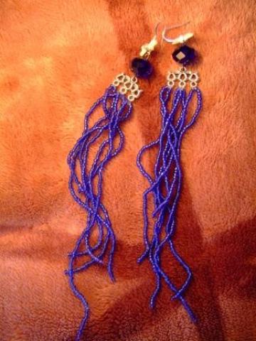 Grazus ilgi auskatai. Su melynais svarofskeis ir isegimai pasidabruoti.