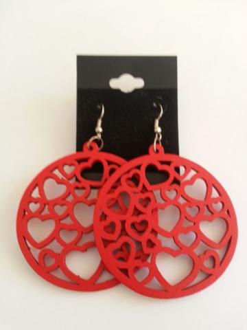 Rankų darbo auskarai. Ilgis: ~7,5 cm. Sudėtis - sidabro sp. metalinės detalės, raudonos sp. medžio ruošinys