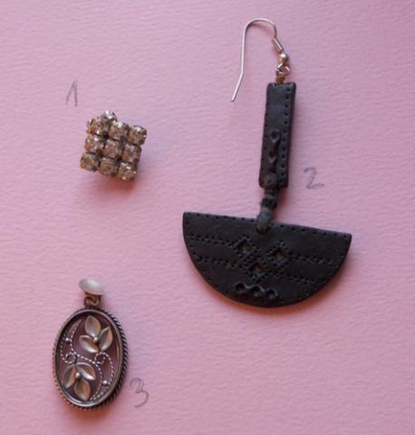 1 - klipsuii apie 70 metu (: 2as numeriukas- oda, vienetinis, menininko darbas. 3ias auskaras/pakabukas, pagal pageidavimą Mainai tik Vilniuje
