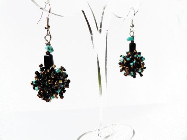 Biseris, turkis, metalinės detalės. Ilgis 5,5 cm