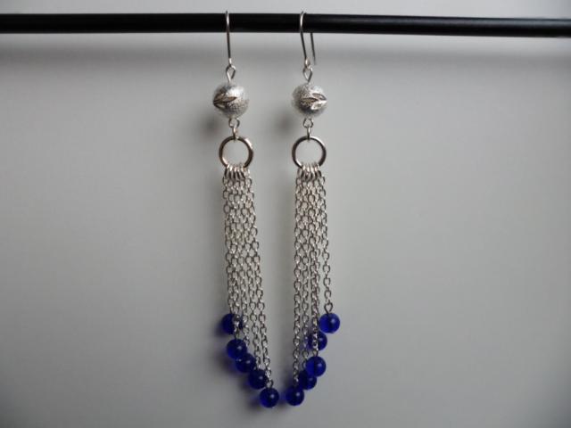 Ilgi auskarai su mėlynais stiklo karoliukais