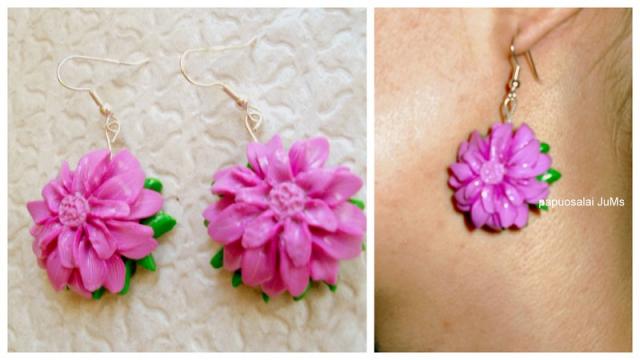 ranku darbo auskarai is modelino, kabliukai pasidabruoti.