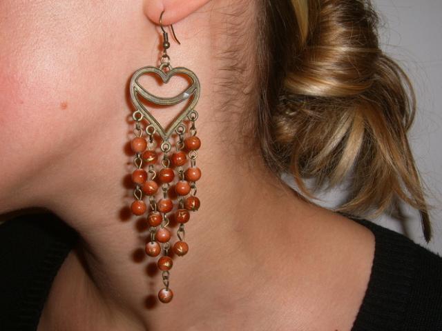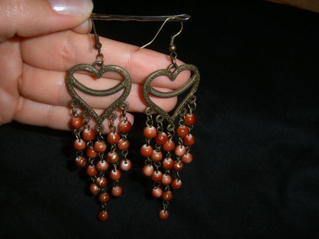 Kabantys sirdeliniai auskarai. Nera sunkus, bet nera ir visiskai lengvuciai.