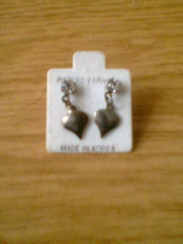 auskarai sirdeles, prie ausies yra tokia blizganti, deimantuko formos akute