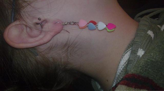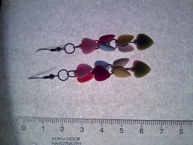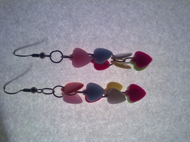 kabantys auskarai susidedantys is 8 spalvotu sirdeliu