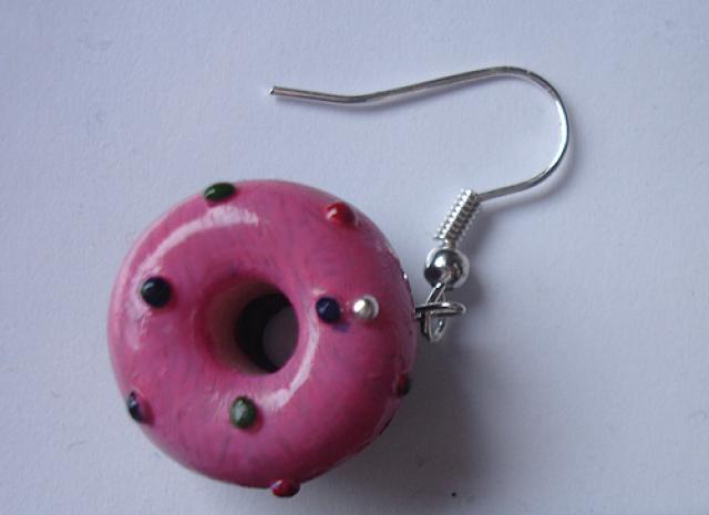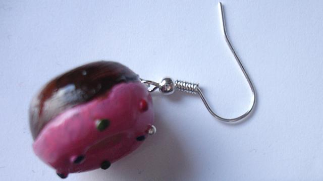 Apie 1.8 cm skersmens, su kabliukais. Įeina 2 spurgos-auskariukai. Rankų darbo :)