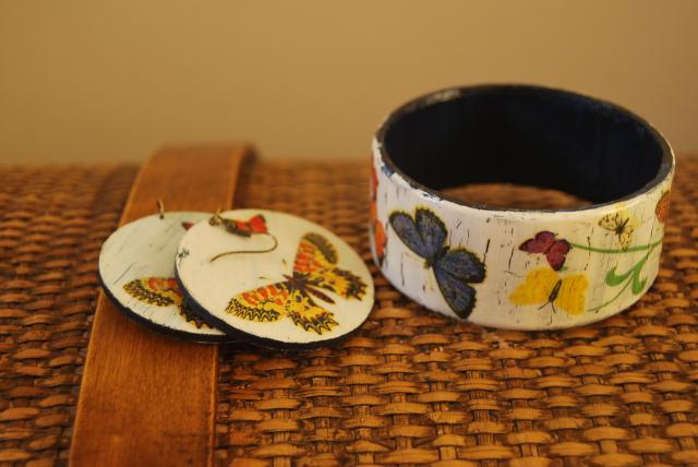 Auskarai su drugeliais ir apyranke