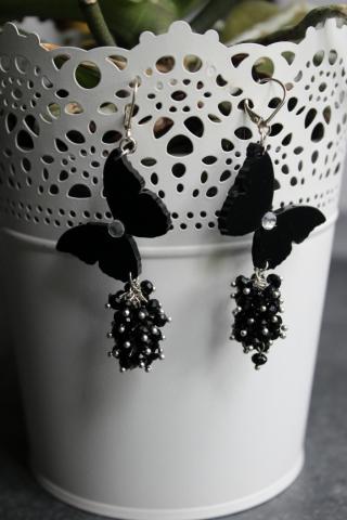 Auskarai su drugeliais ir juodais stikliniais kristaliukais