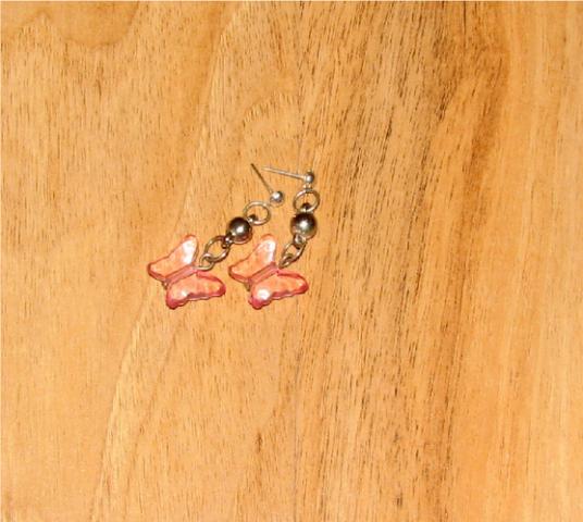 auskarai su roziniais drugeliais