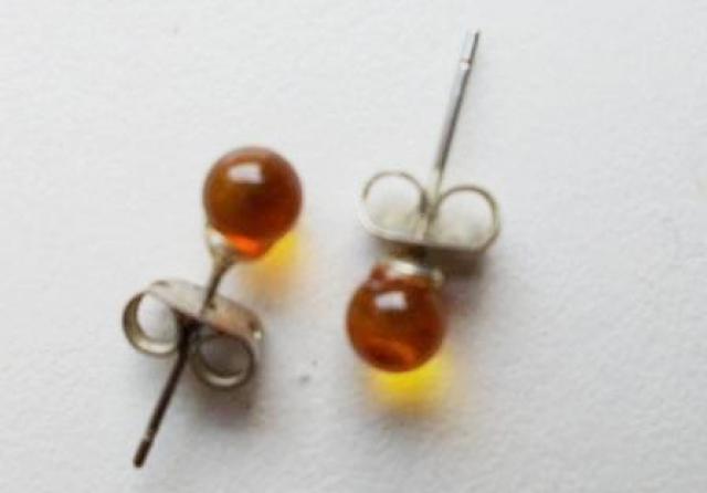 metalas paprastas, gintaras tikras yra du auskarai, pora