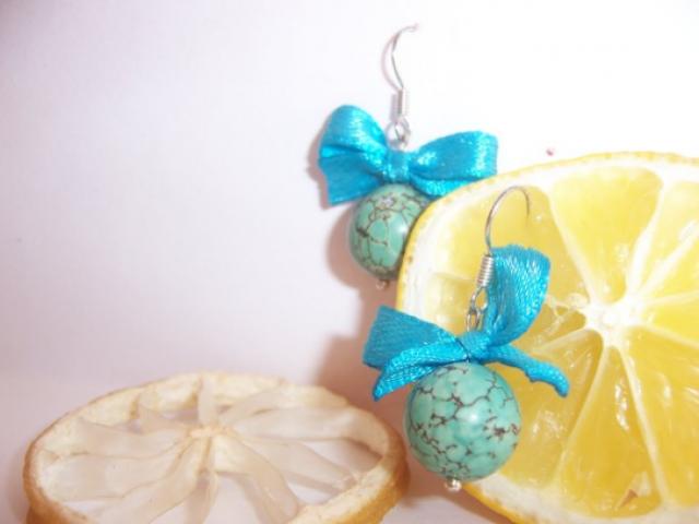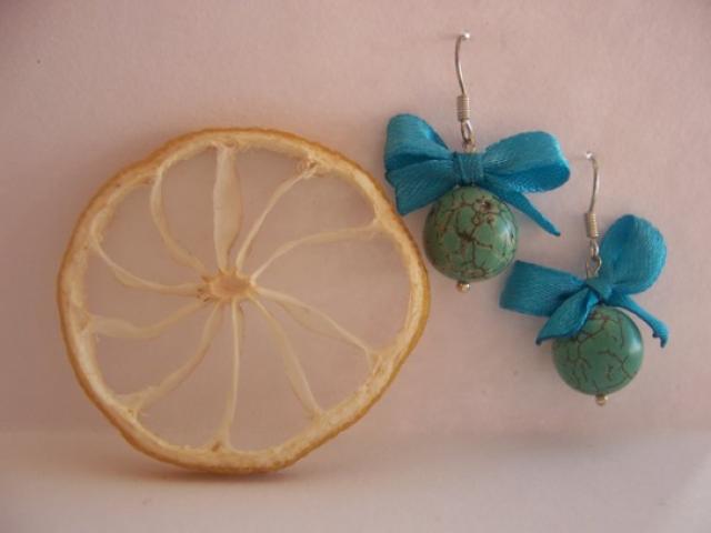 auskarai su kaspiniuku ir naturaliu turkio akmeniu. Rankų darbo.