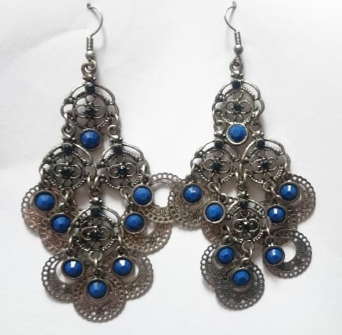 Auskarai su mėlynais akmenukais.
