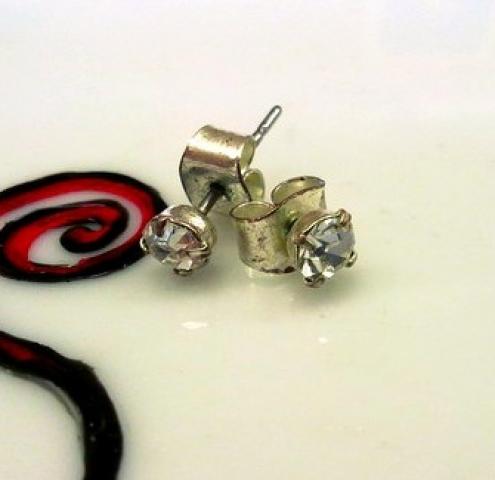 Auskarai su netikrais deimantukais.