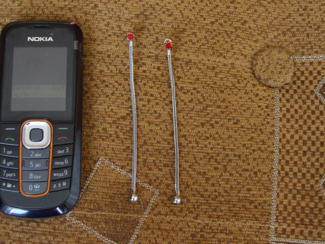 ilgi kabantys auskarai. Prie pat ausu raudona akute.