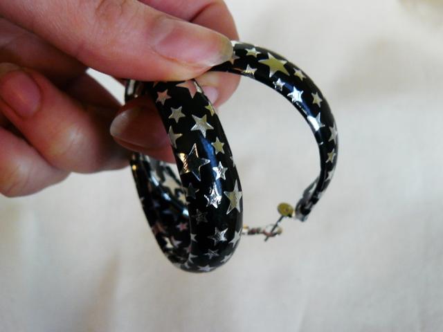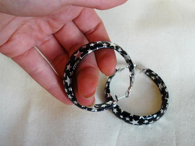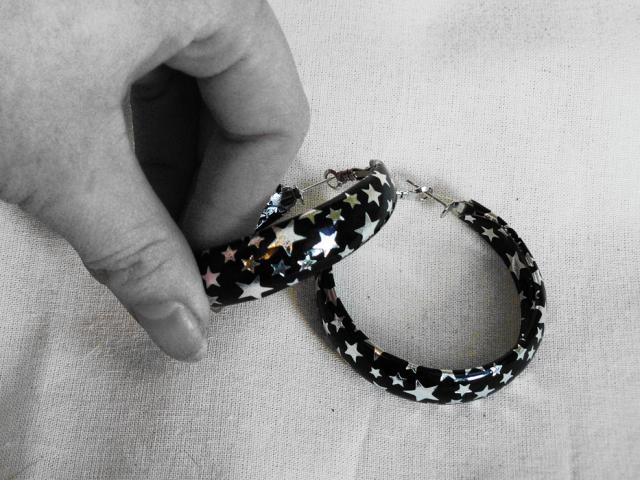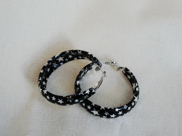 Nauji auskariukai juodi su sidabrinėmis žvaigždutėmis, su kuriais gatvėje pasijusite kaip tikra žvaigždė. O romantiškomis akimirkomis jie primins žvaigždėto dangaus ramybę. Apskritimo skersmuo 5cm