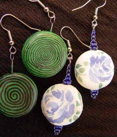 Auskariukai iš modelino. naudota ir dekupažo technika