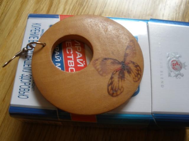 Nedaug nešioti, puikios būklės mediniai auskarai su žaviu drugeliu.