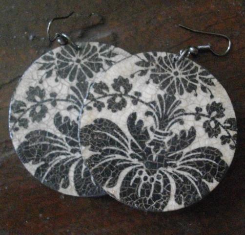 auskarai atlikti dekupažo technika, formų yra įvairių,galima ką nors ir pakeisti jei nepatinka