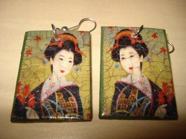 Labai grazus dekupazo auskarai su geisha. 15lt