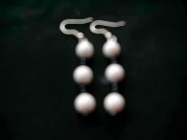 Rankų darbo auskarai su baltais ir juodais karoliukais