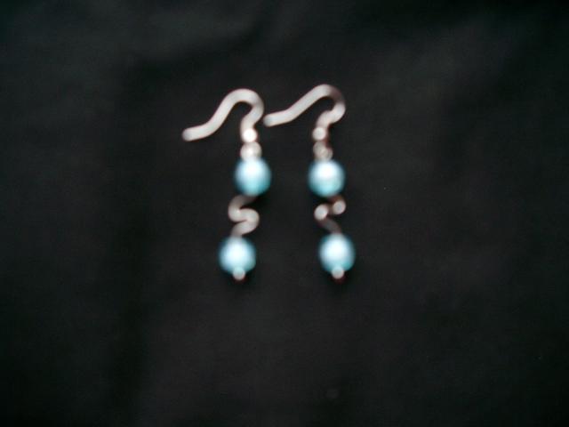Rankų darbo, raitytos formos auskarai su žydrais karoliukais