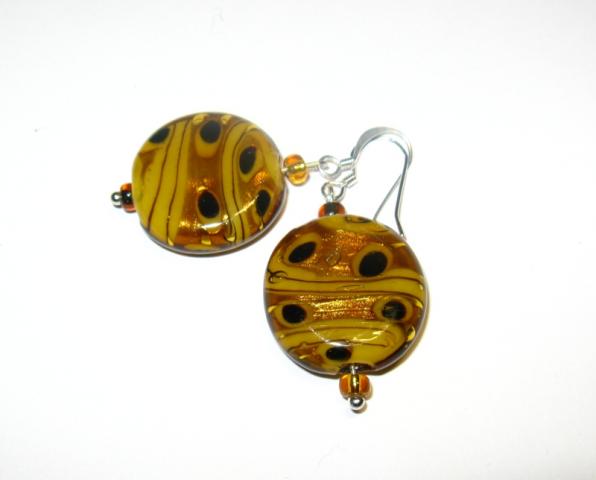 Stiklo karoliukas, biseris, pasidarbuoti užsegimai. Ilgis 3,0 cm iki užsegimo, plotis 2,0 cm (12 Lt)