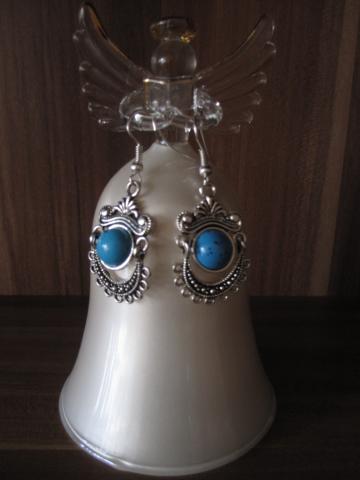 Zavus tibeto sidabro auskariukai su turkio akmeneliu.