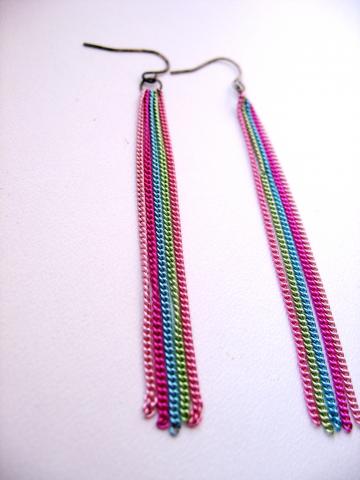 Jaunatviški spalvoti apie 7cm ilgio auskarai.