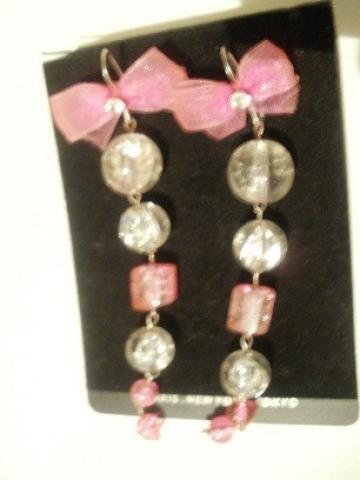 Grazus ranku darbo auskarai, su roziniais kaspineliais, ir akmenukais.