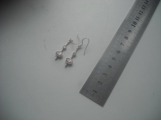 Gražūs auskariukai. Mažas deimantukas yra baltas, o didesnis rožinis.